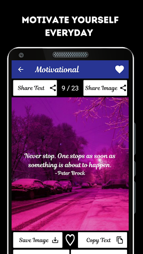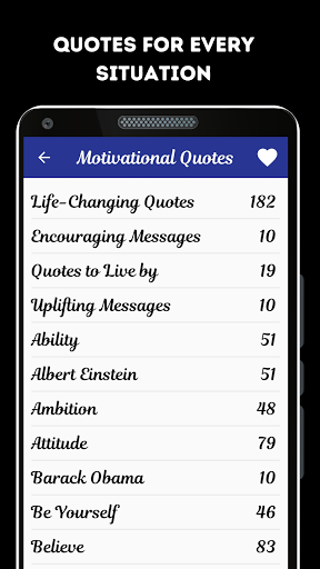 Aplikasi ini juga mudah diakses dan cepat. Ia mempunyai koleksi terpilih lebih dari 3,000 petikan dari lebih dari 1500 orang. Cukup pilih kategori dan senarai petikan yang banyak terdapat di skrin telefon bimbit anda. Ketuk aplikasi dan anda boleh mendapatkan pilihan untuk menghantarnya kepada rakan anda. Ia dapat menambahkan nilai tahan lama ke tablet atau telefon anda.