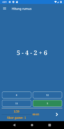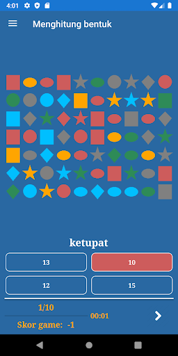 Anda boleh melihat statistik dengan memilih item menu dalam menu utama. Maklumat termasuk skor keseluruhan, ketepatan, kiraan jawapan yang betul dan salah.