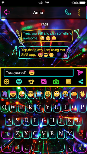 - Customizable keyboard color, font and wallpaper