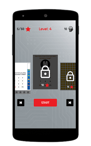BAR Brain Smassions App တွင်သင်အဆင့်အမျိုးမျိုးကိုကစားနိုင်သည့်မူလမြင်ကွင်းတွင်ကစားခြင်း၏အဓိကအင်္ဂါရပ်တစ်ခုပါရှိသည်။ ပထမသုံးဆင့်နှင့်အတူ 3 အဆင့်ဆင့်နှင့်အတူကြယ်များနှင့် ဦး နှောက်ကိုဆုအဖြစ်ရရှိရန်သော့ဖွင့်နေကြသည်။ ထို့နောက် 4th အဆင့်မှနောက်ပိုင်းအထိသော့ခတ်နေကြသည်။ level 4 ကိုသော့ဖွင့်ရန်အသုံးပြုသူသည်အနည်းဆုံးကြယ် 10 ပွင့်ရှိရန်လိုအပ်ပြီး 5 ကြိမ်မြောက်အဆင့် 5 ဆင့်နှင့်အဆင့် 5 အထိရှိသည်။ သင်၏ ဦး နှောက်စွမ်းရည်ကိုစမ်းသပ်ရန်အဆင့်အတန်းများအားလုံးတွင်အဆင့်အတန်းအားလုံးရှိသည်။