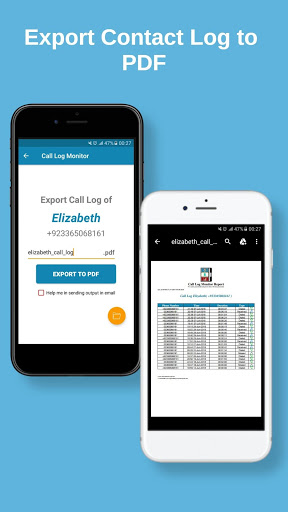 Call Log Monitor ကိုသင်၏အဆက်အသွယ်အမည်များကိုမှတ်တမ်းတင်ခြင်းနှင့်သင်၏လိုအပ်ချက်အရ PDF သို့တင်ပို့ရန်အတွက်ရိုးရှင်းသော app (အခမဲ့) ဖြစ်သည်။ app ၏ကွဲပြားခြားနားသောအင်္ဂါရပ်များပါ 0 င်သည်။ * PDF သို့ပို့ပါ။ PDF သို့မှတ်တမ်းစာရင်းဇယားကို PDF သို့ခေါ်ဆိုပါ။ Google Drive Dropbox နှင့်စသည်တို့ပါ 0 င်သော iCloud တည်နေရာတွင်ချက်ချင်းသိမ်းဆည်းပါ။ PDF backup နှင့်သီးခြားဆက်သွယ်ရန်မှတ်တမ်းများကိုရယူပါ။