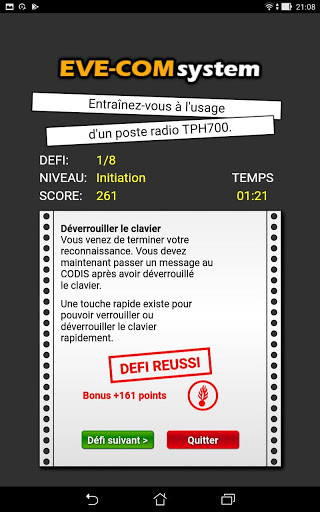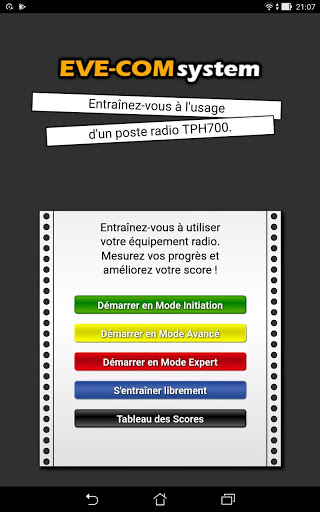 Il est aussi possible de s'entraîner de manière libre afin de pouvoir s'entraîner tranquillement à la manipulation du terminal radio.