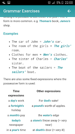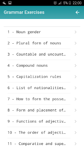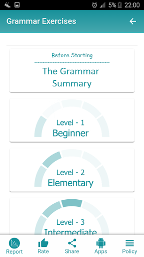 Android ဖုန်းများနှင့်အတူအင်္ဂလိပ်သဒ္ဒါဘာသာဖြင့်လုပ်ဆောင်ခြင်းသည်အကောင်းဆုံး application ဖြစ်သည်။ ဤ application တွင်အင်္ဂလိပ်သဒ္ဒါနှင့်သင်၏ကိုယ်ပိုင်နှုန်းနှင့် 313 ကျော်ပါဝင်သည်လေ့ကျင့်ခန်းများနှင့် QCM အခက်အခဲ 5 အဆင့်သို့ခွဲခြားထားသည်။