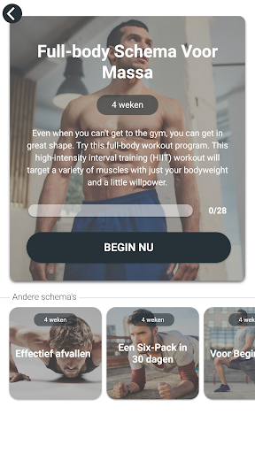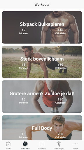 Wil je spieren opbouwen, strakker worden en in korte tijd fitter worden? Probeer onze trainingsroutines om je volledige lichaam te versterken. Krijg six-pack buikspieren thuis zonder apparatuur nodig te hebben. Gelukkig kan je door thuis trainen makkelijk vet verbranden, spieren opbouwen en een geweldige workout krijgen door gewoon lichaamsgewicht oefeningen te doen - geen sportschool of trainingsapparatuur nodig.