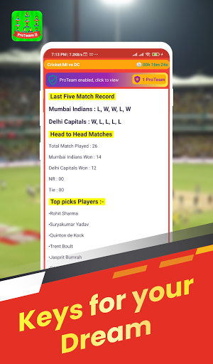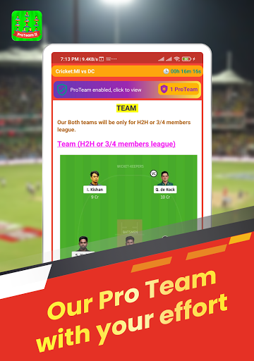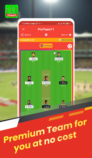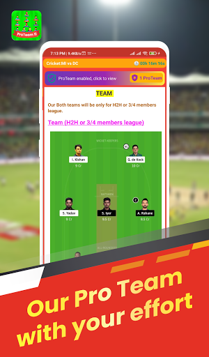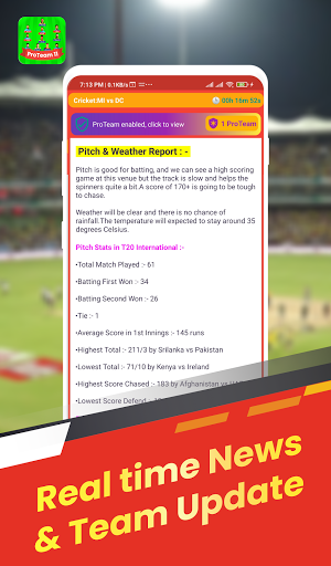Pro Team 11 - Dream11 Voorspelling en tips is een nieuw gelanceerde Fantasy Sports Prediction-app die Match Analyse biedt, Pitch Report, Weerbericht, Player's Recente stat, Waarschijnlijke XI en teams voor het spelen op verschillende fantasiesport-apps zoals Dream11, My11circle, MyTeam11, Fangevecht , PayTM Eerste Game enz.