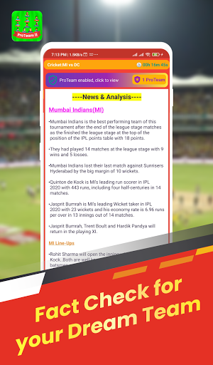 Iedereen heeft een droom om succes te krijgen in Fantasy Sports-apps en Pro Team 11 helpen je om je doel te bereiken in termen van het verstrekken van teamnieuws, 11 en voorspelde droomteam na detailanalyse.