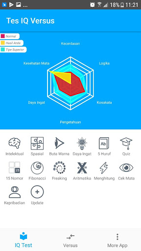 IQ-tests en persoonlijkheid zijn Android-toepassingen die uw aard, persoonlijkheid en IQ testen. Deze applicatie is handig voor degenen onder u die tests willen nemen bij het delen van de instellingen en bedrijven. Weet de mate waarin u geschikt bent om te werken en het leven te leiden. Voor degenen onder u die de CPNS-test nemen, is deze applicatie een aanvulling op de CPNS-verfsimulatie, politietest, psychologische tests, academische potentiële tests, psychologische tests, wiskundetests, nauwkeurigheidstests, logische tests, analysetests, linker hersentests, Geheugentests, tests strategieën, algemene en basisvermogen tests, Sudoku-spellen, telt, linker en rechter hersentests door het onderscheiden van kleurwoorden, hersenduels en hersenkrakers.