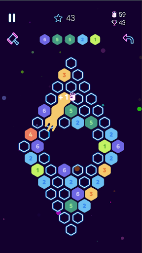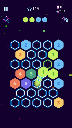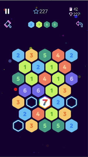 Kleurrijke zeshoeken en cijfers samenvoegen puzzelspel! Hexa Merge Puzzle is een verslavend nummer samenvoegen puzzelspel dat u uren vermaakt. Je doel is om cijfers samen te voegen om het uiteindelijke doel van Lucky Seven te bereiken. Denk strategisch en heb een geluk!