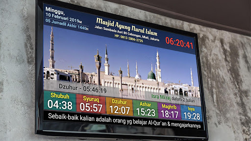 Moslem prayer times displayed on TV, very nice installed in the mosque, your prayer room or event in your livingroom.