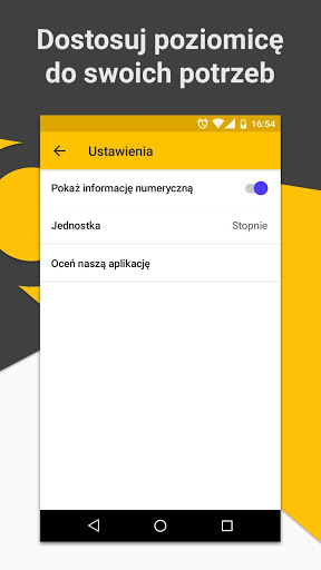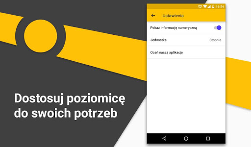 Aplikacja używa akcelerometru i żyroskopu aby pomóc wyrównać lub wypoziomować, zawiesić w poziomie, w pionie lub ustawić pod dowolnym kątem każdy obiekt, do którego przyłożysz telefon.