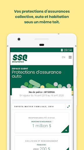 Z aplikacją mobilną ubezpieczenia SSQ, Twoje zbiorowe zapewnienia, auto i mieszkanie są na wyciągnięcie ręki! Wystarczy zarejestrować się w obszarze klienta i połącz się z odciskiem palca, aby uzyskać dostęp do następujących funkcji: