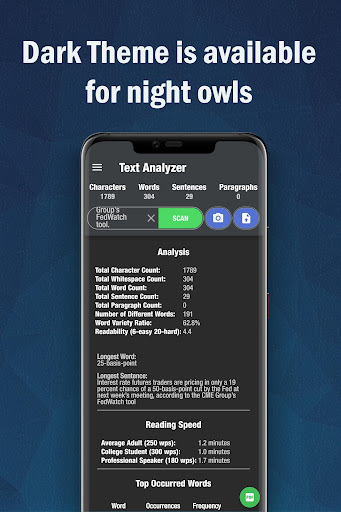 jest prostym do użycia narzędzia do analizy tekstu do liczenia słów, znaków, zdań i akapitów w tekście, który możesz wpisać, wkleić lub po prostu zrobić zdjęcie. Co więcej, uzyskaj szybkość czytania, ogólne nastroje tekstu, analizy podmiotów z Wikipedia Links, Składnia i analiza morfologiczna, zalecenia Synonimu, pobierz ładnie strukturalny plik PDF analizy.