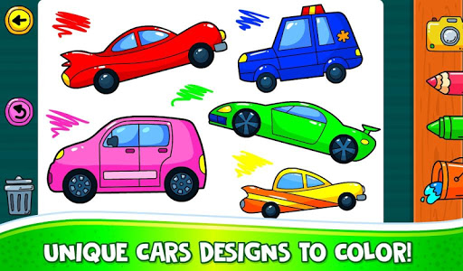 za darmo Zawiera różne unikalne narzędzia do rysowania do wyboru sprenów kolorów , ołówki, pastel itp. Zawiera opcję automatycznego wypełnienia, aby ułatwić przedszkolne dzieci do kolorowania samochodów jednym kliknięciem. Dzięki więcej niż 30 jasnych kolorach dzieci mają możliwość zapisywania i zaprezentowania swoich dzieł sztuki. Aplikacja jest idealna dla dzieci 2,3,5,6,7 i 8 lat.