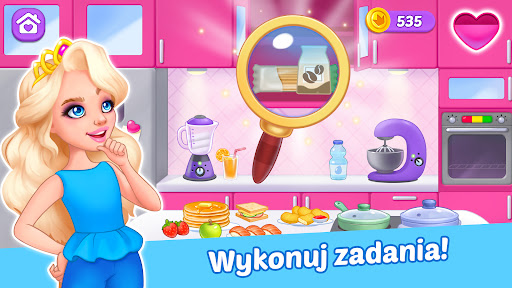 👑Ciekawe zadania i nagrody! Spełniaj życzenia księżniczki i inne zadania w grze. Pomożesz lalce gotować pyszne posiłki, brać relaksującą kąpiel, wykonywać zabiegi kosmetyczne oraz odkrywać i znajdować określone przedmioty w domu mody.