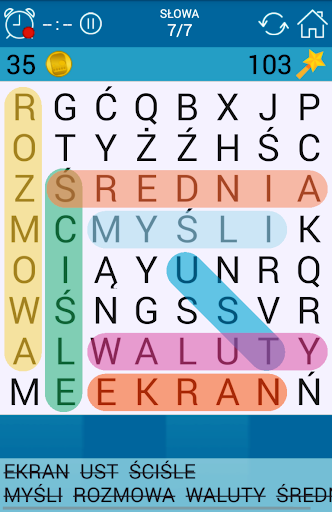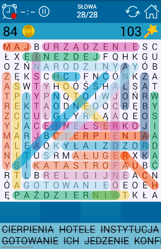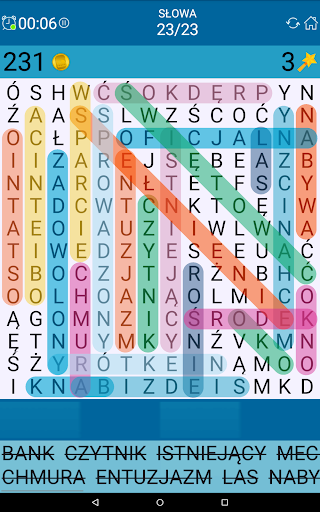 Wykreślanka w języku polskim za darmo. Można grać w 5 x 5 gry dla dzieci do ekstremalnych wyzwań 20 x 20. Wybierz poziom trudności twojego Wykreślanka puzzle!