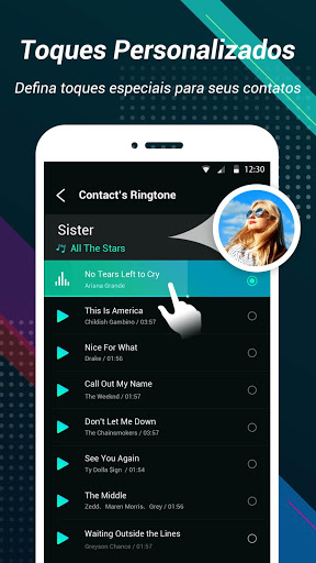 Ouça uma amostra e transforme rapidamente suas músicas favoritas, como rap, pop, rock, música clássica e sons de animais em toques predefinidos, toques de mensagens, notificações e alarmes, podendo personalizar todos os sons do seu dispositivo.