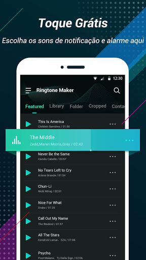 O Editor de Toques Grátis é o aplicativo de edição de toques mais popular para dispositivos Android. Gratuito e fácil de usar, você pode criar os toques, sons de alarmes e de notificação que quiser a partir de arquivos mp3 ou outros arquivos de áudio. Além disso, você pode baixar milhões de toques grátis aqui.