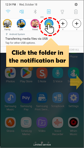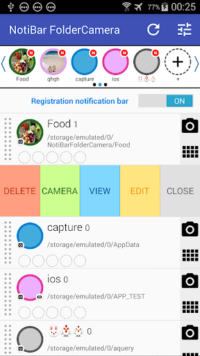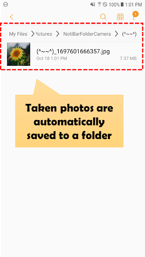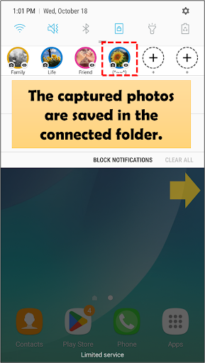 4.Abra a barra de notificação e clique em uma pasta a qualquer momento, em qualquer lugar para tirar uma foto ou ver uma foto.