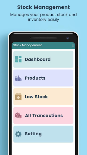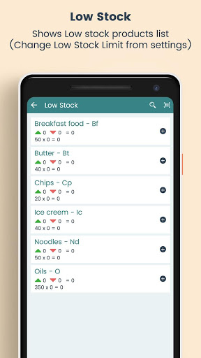 Este aplicativo gerencia o produto adicionando detalhes do produto como nome, ID do produto, taxa de compra e descrição. Também gerencia transações de produtos - In (Import) / Out (Export). Ele mostra produtos de estoque baixos com base no limite de baixo preço definido em configurações. Lista de produtos de estoque baixo ajuda você a decidir o que comprar para controlar o inventário.