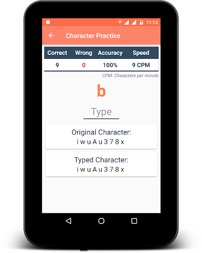 » Prática de caracteres - Você pode usar esta prática para começar a aprender a digitar. Familiarize-se com o teclado e comece a digitar rapidamente. Obtenha as estatísticas de caracteres por minuto (CPM) do caractere digitado.