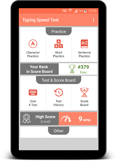 O aplicativo Teste de velocidade de digitação é útil para testar / medir a velocidade de digitação de um usuário. Aprenda a digitar e descubra com que rapidez você pode digitar. O aplicativo possui um rico conjunto de aulas gratuitas de digitação, com opções como digitação difícil / média / fácil para realizar a digitação on-line e aprender a digitar. As letras são destacadas para ajudá-lo a se concentrar na digitação. Você pode se tornar um mestre em digitação com a ajuda deste aplicativo ou pode jogar jogos de digitação por diversão. Você precisa adicionar o teclado específico do idioma para digitar esse idioma.
