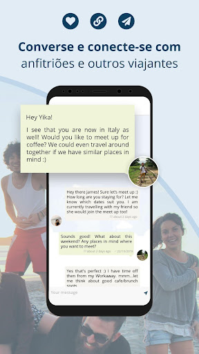 * Encontre um parceiro de viagem e associem suas contas para planejar sua próxima aventura pelo Workaway, visitar anfitriões e se candidatar juntos
