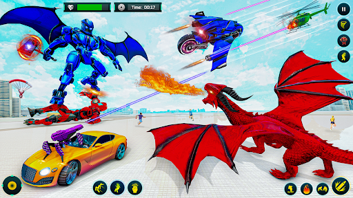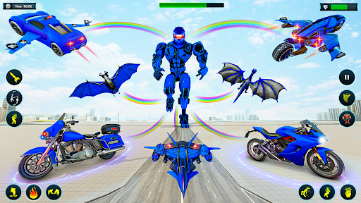 - Jogos de bicicleta voadora com elementos divertidos de jogos de robôs policiais.