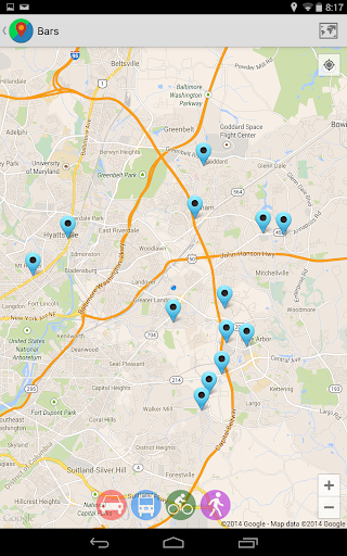 Você pode facilmente mudar a sua localização e encontrar os lugares mais próximos; Bancos, bares, restaurantes, supermercados, postos de gasolina etc ao redor ou em qualquer lugar na Terra.