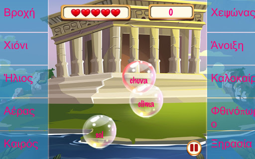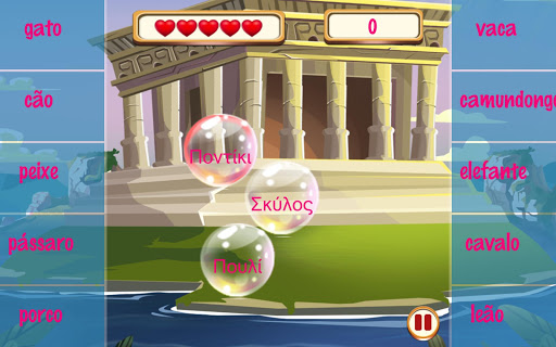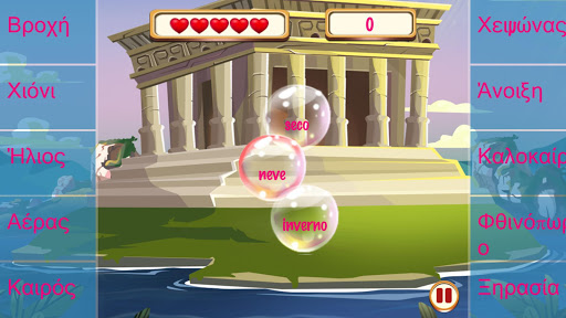 O jogo é simples de jogar. Você seleciona uma bolha, ela começa a flutuar, e em seguida toque na tradução para estourá-la. Você pode ler a palavra na bolha, ou ouvi-la narrada por um falante nativo. No processo, você aprenderá todos os tipos de novas palavras Gregas no alfabeto Grego. Ah, e é tão gratificante ouvir o "pop!".