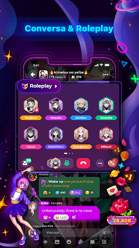 Combine forças com seus amigos e os personagens de IA deles para aventuras épicas de interpretação de papéis. Navegue por histórias co-criadas por seu grupo, que se desenrolam em tempo real. Com os personagens de IA, aventuras mais profundas o aguardam!