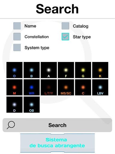 ★ Procure estrelas por constelação, nome, catálogo ou tipo de estrela (cor)
