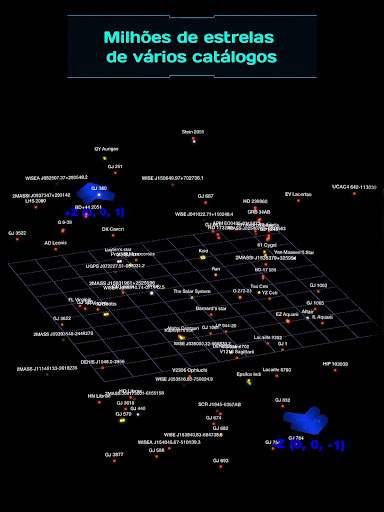 ★ Mais de 3,8 milhões de estrelas no banco de dados da missão Hipparcos da Agência Espacial Europeia, o catálogo Gliese e partes do ASCC - All Sky Compiled Catalog