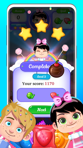 para manter sua atenção e testar suas habilidades, o quebra-cabeça O jogo oferece variedade de níveis que desafiam suas habilidades de correspondência. Cada próximo nível é mais difícil do que o nível anterior, empurrando você a pensar mais e mais rápido para limpar os doces. Em cada nível do jogo 3, você tem apenas um número limitado de movimentos para limpar os doces. Seja inteligente e use seus movimentos estrategicamente para limpar os doces e resolver um dos melhores jogos de quebra-cabeça gratuitos.