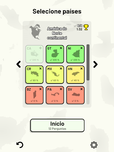 Este jogo cobre 6 tópicos sobre os países da América do Norte: