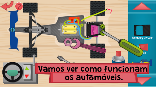 No início do jogo o seu filho precisa de escolher um carro de brinquedo. Há uma escolha entre um carro de corrida azul e um rosa. Depois que o carro do selecionado começa a diversão. Experimente e desmontar suas partes, desapertando e destacando-los do carro de RC. Durante este grande diversão as crianças podem observar como as coisas como sistema de direcção ou de trabalho engrenagem de condução, aprender seus nomes e função.