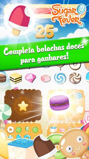 Sugar Fever, um divertido jogo que vai testar os teus reflexos e a tua rapidez. Parte numa aventura cheia de doces e açúcar, combina guloseimas, faz combinações incríveis, pontua e completa missões para te tornares num dos melhores jogadores de Sugar Fever do mundo nos nossos rankings mundiais. Dezenas de conquistas estão à tua espera. Desafia os teus amigos e prova que és o melhor!