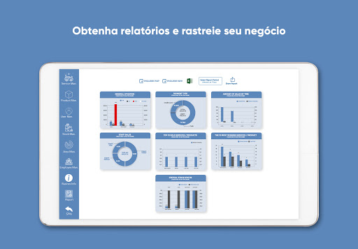 • Produz relatórios para monitorar seu negócio instantaneamente e no período que você deseja,