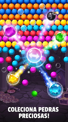 Acerta e rebenta as bolhas da mesma cor! Neste jogo, o objetivo é combinar 3 bolhas para fazê-las explodir e deixar cair bolas coloridas. Diverte-te a rebentar as bolhas! Usa o atirador de bolhas para colecionar pedras preciosas, partir potes e muito mais numa variedade de níveis!