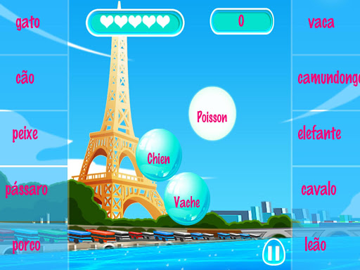 Você só tem que estourar as bolhas com a tradução do vocabulário correspondente.