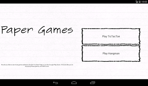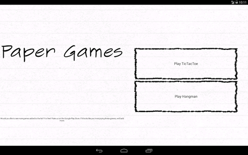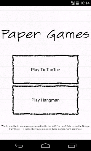 Jogos de papel traz você tic tac toe (noughts and crosses) e Hangman em deslumbrante lo-fi.