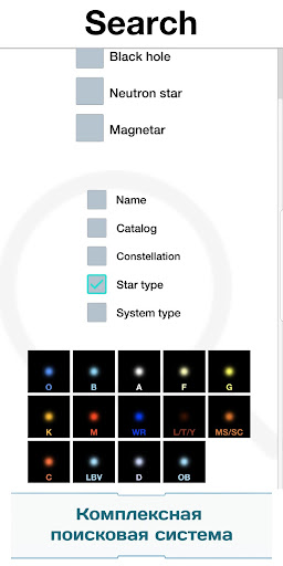 ★ Поиск звезд по созвездию, названию, каталогу или типу звезды (цвет)