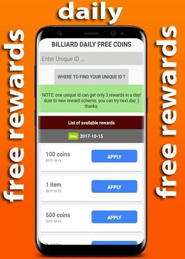 вы можете увидеть все доступные награды по применению и может применяться каждый код по отдельности. Это приложение для 8 шарового инструмента бассейна будет применять все доступные награды непосредственно на 8 мяч бассейн бильярда счет с уникальным id.what вы ждали скачать 8 Ball Pool новых игры в 2017 году и заработать монеты, держать вызов с друзьями