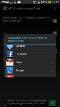 AES Шифрование может отправлять зашифрованное или дешифрованное сообщение посредством электронной почты, SMS, IMS, Facebook или другой подобной