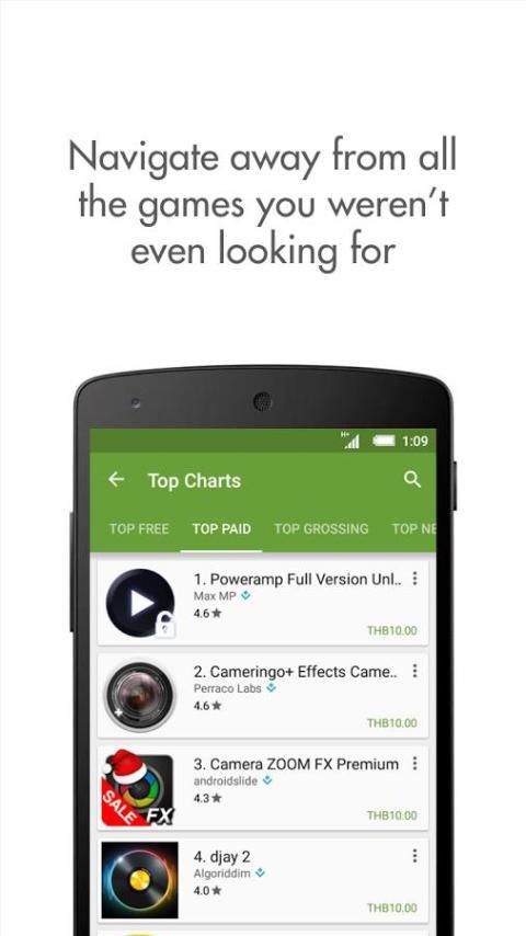 Приложения запускает Play Маркет в скрытом "приложения только" страницы, что дает вам прямой доступ к вершине диаграмм для приложений, без всех игр.