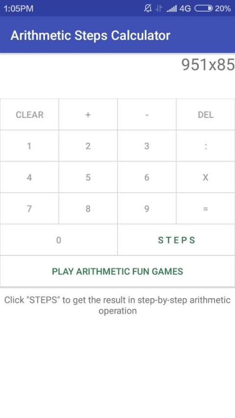 Арифметика шаги Калькулятор является приложение, которое может показать вам детали шаг за шагом операции арифметического (сложение, вычитание и умножение длинного) между двумя положительными целыми числами. С четкой инструкцией и шаг за шагом подходом, ваши дети или дети могут узнать и проверить их арифметическую концепцию и понимание тех пор, как они хотят.