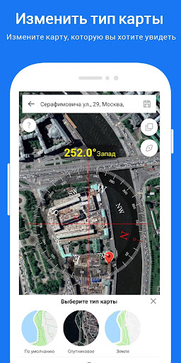 - Ищите место по имени адреса. Найдите свое местоположение через GPS, также ориентируйтесь с магнитным компасом.