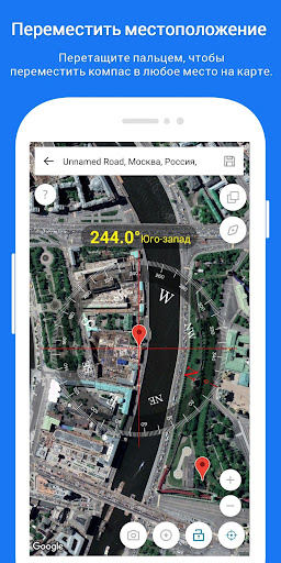 - Переместить компас, коснувшись местоположения, которое вы хотите на карте.