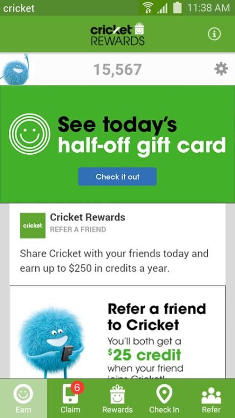 Приложение Cricket Rewards является отличным спутником приложение My Cricket, также доступны в Google Play Store.