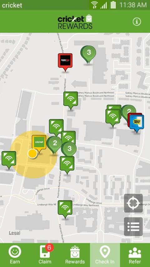 - Заезд: Используя вашу Cricket Rewards приложения, которое вы можете заработать еще больше, проверяя в местные розничные торговец, в том числе по крикету и 1,000s местных точек подключения Wi-Fi,