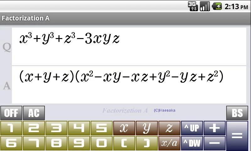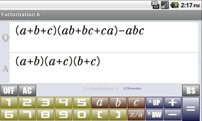 ・(1.0.2.0) 因数分解の結果、因数が6個以上になる場合に正しく結果表示されない現象の修正と、最高次の係数がマイナスの場合の結果表示の仕方の変更を行いました。